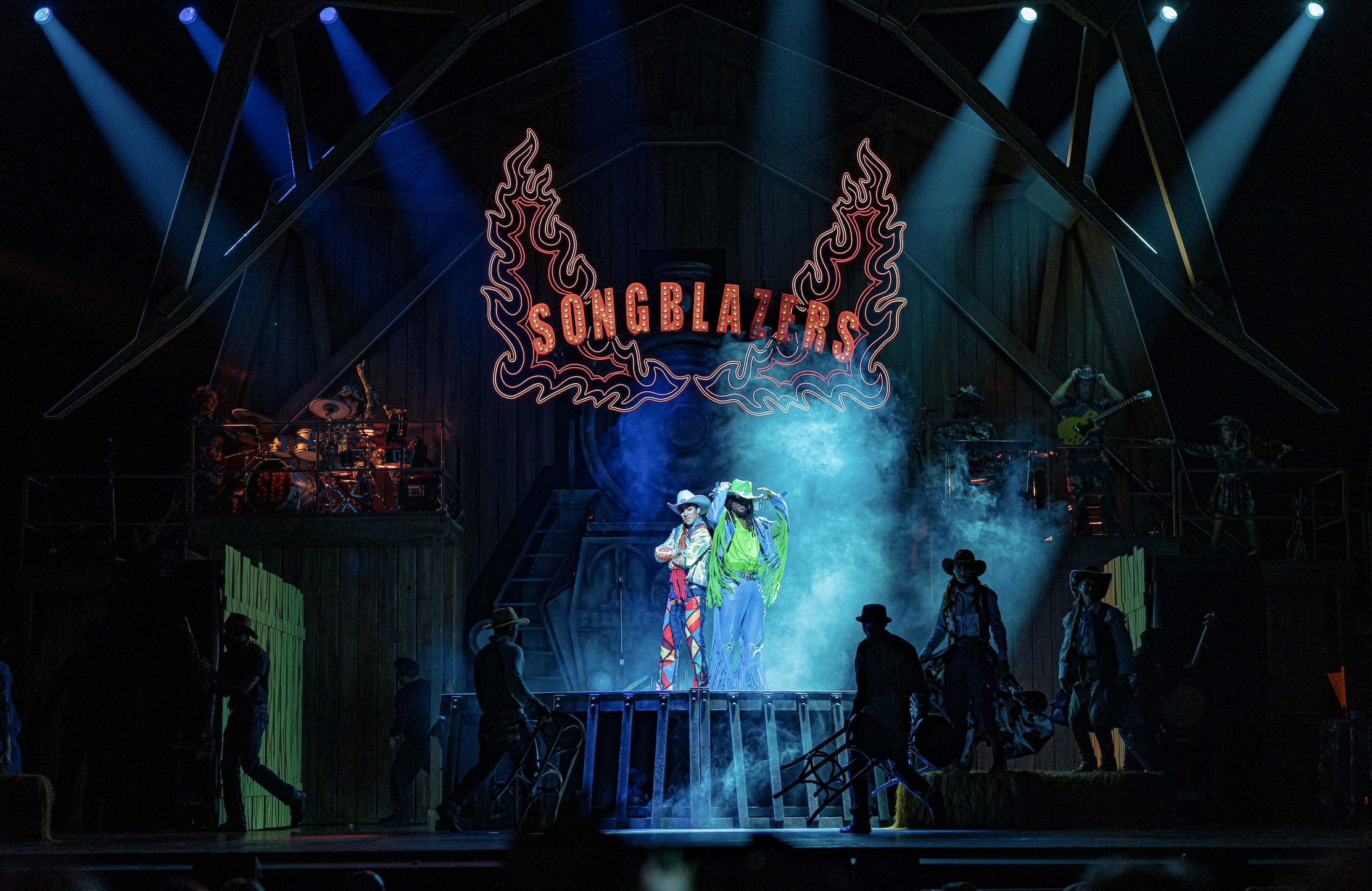 In the show, two dreaming "Songblazers" embark on a musical journey to compose the ultimate country song. They travel through the hills, mountains, fields, railroads, churches, and saloons of America, recording lyrics and ultimately sharing an original song with the world. The trailblazing theater production, directed and written by Amy Tinkham, paid homage to legendary icons of country music and took the audience on a journey of the past with high flying acrobatics to “Man! I feel Like A Woman!” and sing-a-longs to well-known songs like “Friends In Low Places” and “Never Gonna Give You Up”. This unique production features a curated catalog of 35 songs spanning from 1867 to 2024.