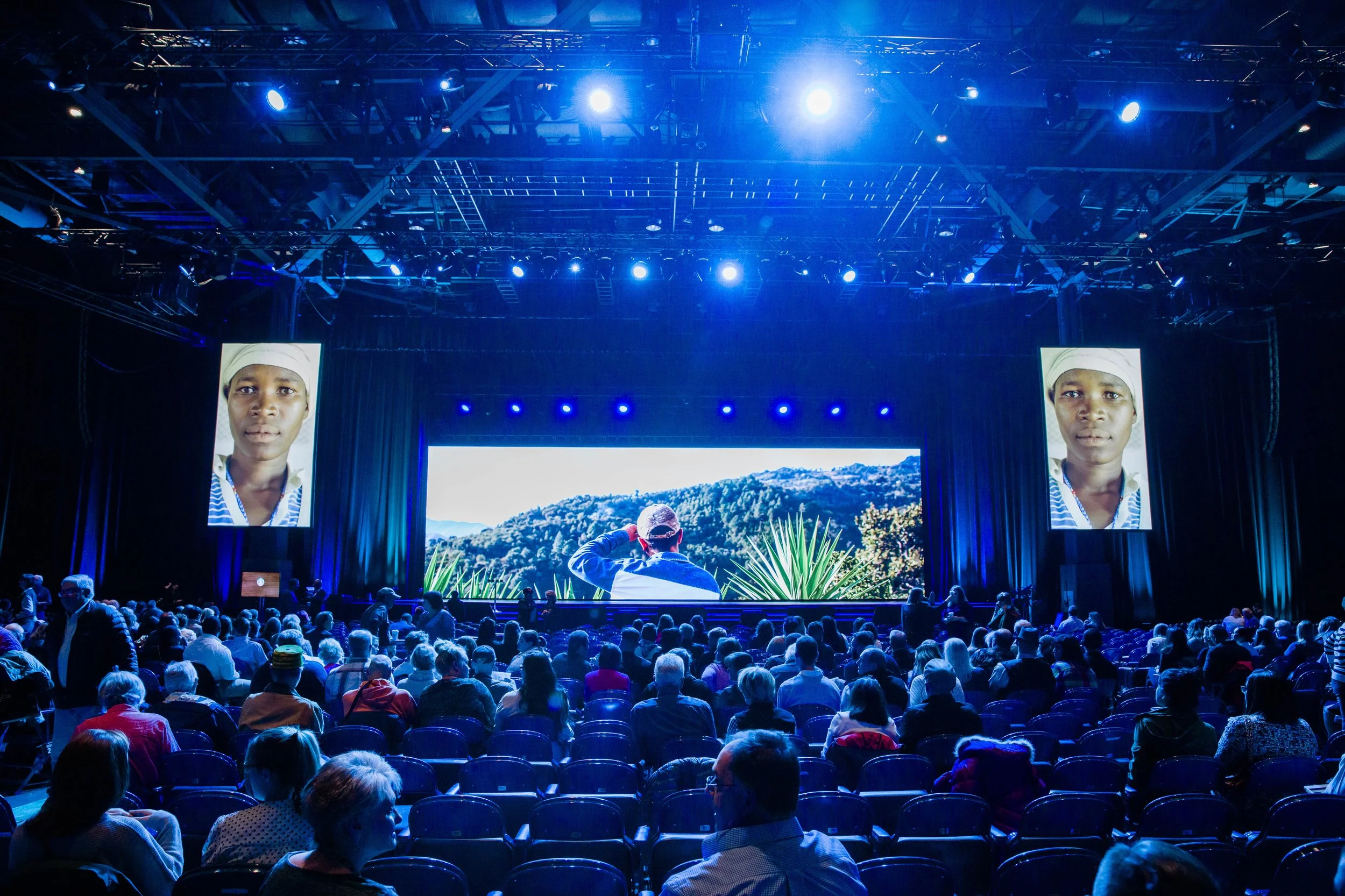 The first Starbucks annual meeting in 1993 was just a small gathering in a downtown Seattle hotel conference room, with a slide presentation and stack of tri-fold brochures. For the next few years it was hosted at the company’s new roasting plant in Kent, Wash., where rows of folding chairs lined the loading dock’s concrete floors. By 1998 the meeting went uptown, occupying the grand stage at the historic Paramount Theater for a year before moving to the Seattle Symphony’s home at Benaroya Hall from 1999-2003. Marion Oliver McCaw Hall hosted the event from 2004-2018 and was the scene of many of the event’s most iconic moments. Starbucks coffee was once even piped down to the stage from the top of the Space Needle. This year’s annual meeting will be its first at a new venue in more than a decade. After years of overflow crowds in the 2,900-seat auditorium at Marion Oliver McCaw Hall, the event has moved to WaMu Theater with its seating for up to 3,900 attendees.
